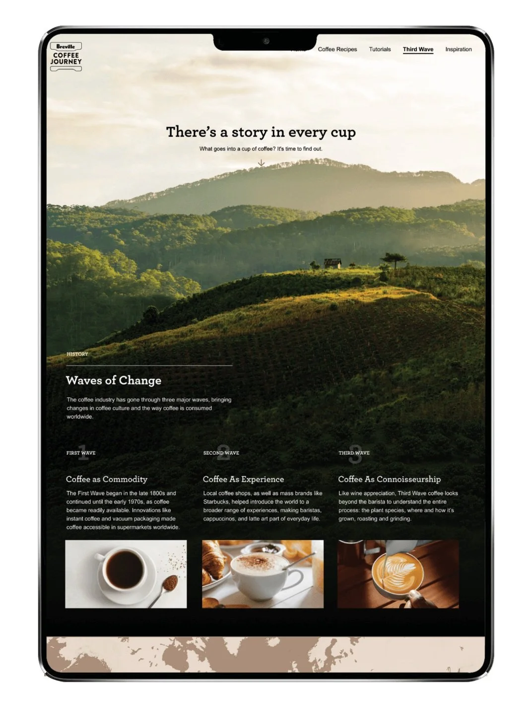 We worked closely with Breville to undertake extensive customer and SEO research, a design sprint, prototypes and user testing. Having validated the demand for a centralised coffee hub, we developed Breville Coffee Journey.